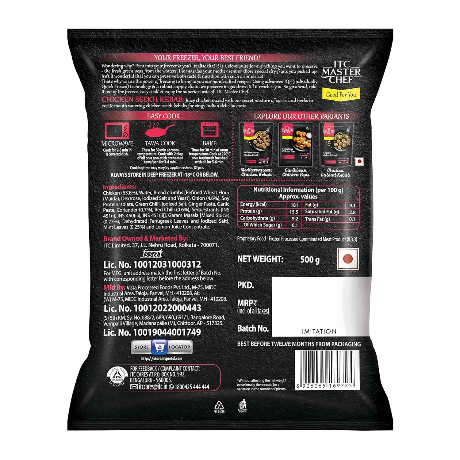 ITC Master Chef Chicken Seekh Kebab | High in Protein | No Added preservatives | Microwave Friendly