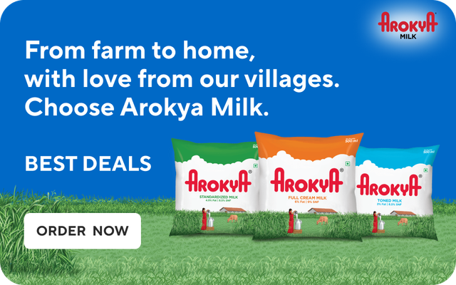 | 5. Arokya Toned Fresh Milk | Pouch | ₹26 |