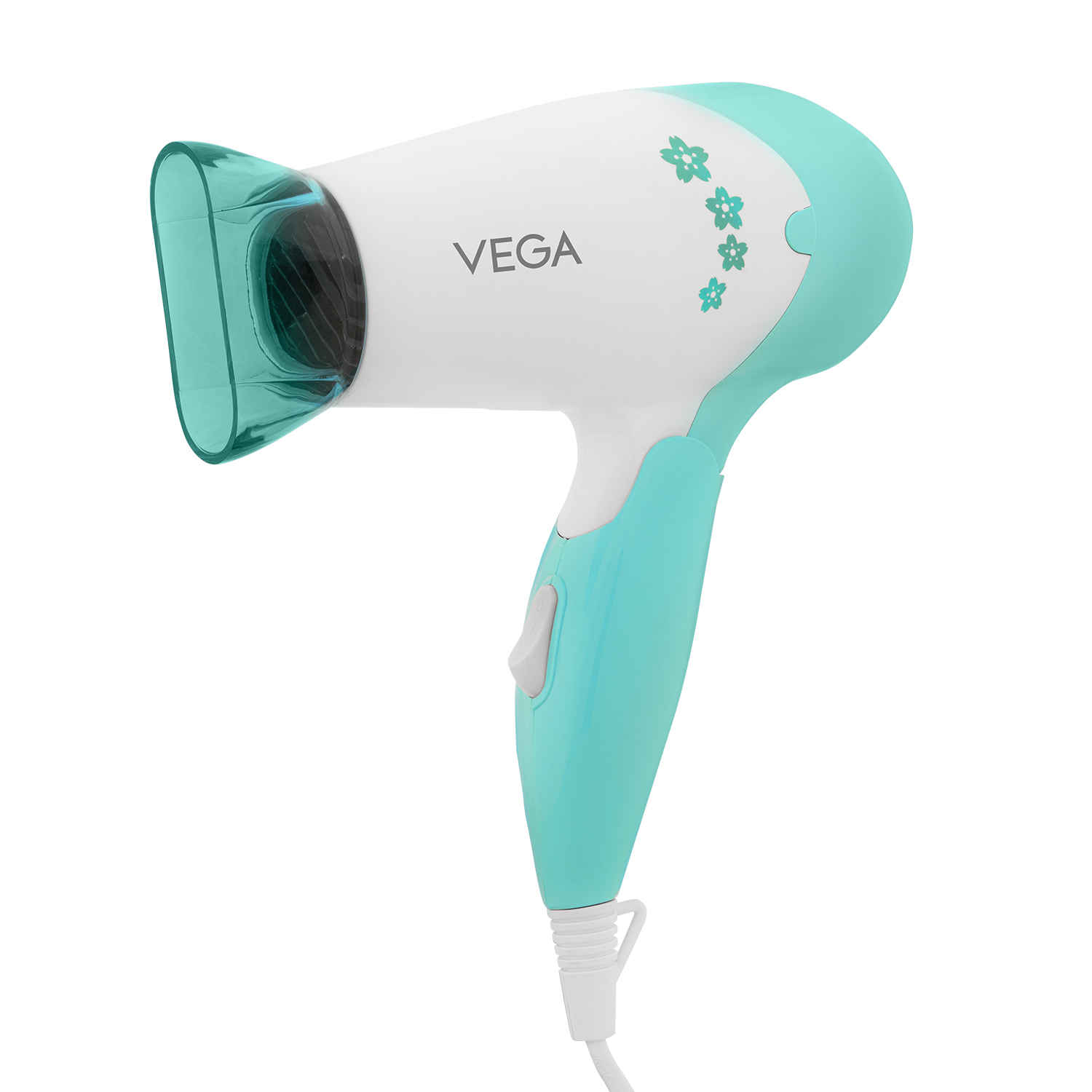 Vega Travel Pro 1200W Hair Dryer for Women with Powerful Motor, 2 Heat/Speed Settings, Detachable Nozzle, Travel Friendly Compact Blow Dryer with Foldable Handle, (VHDH-33)