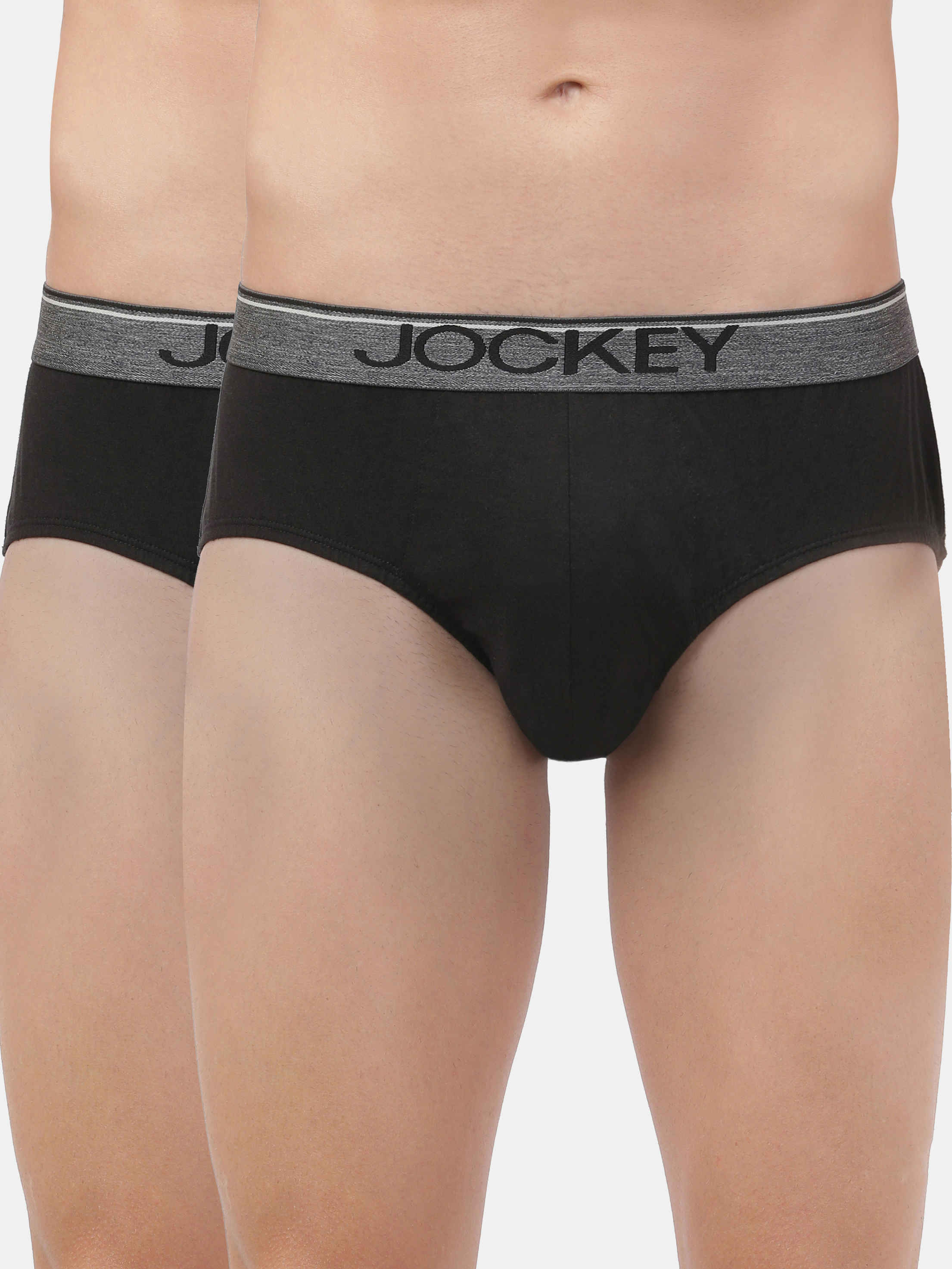 Jockey 8037 Men's Super Combed Cotton Underwear Solid Brief|Ultrasoft Waistband|PO2 | Black-M