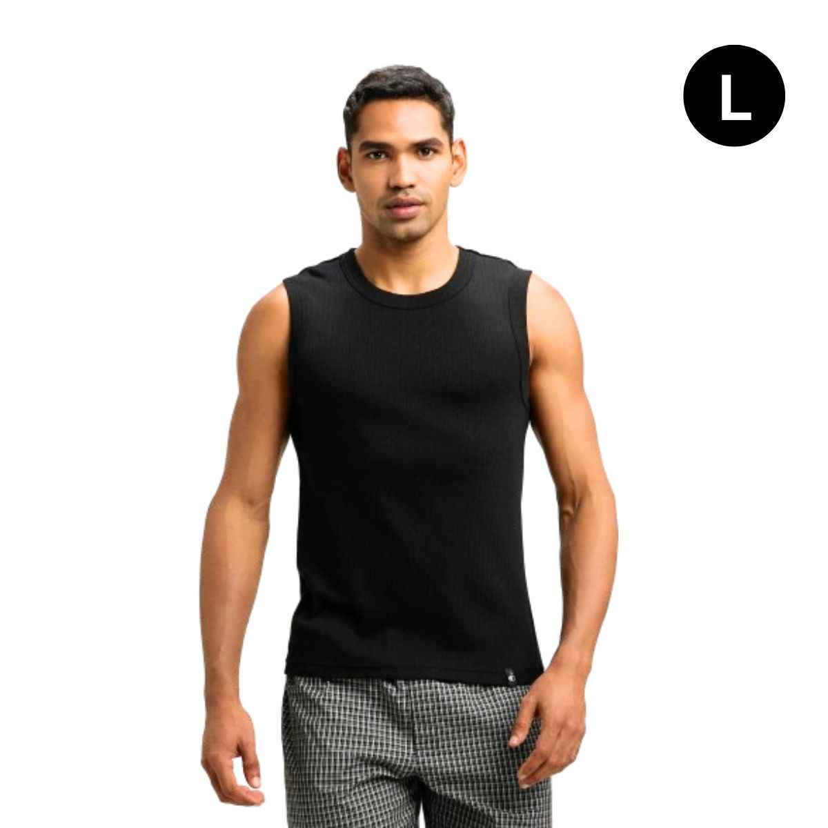 Dixcy Scott Originals Men�S Round Neck Sleeveless Body Fit Solid Vest (Black-Pack Of 2)