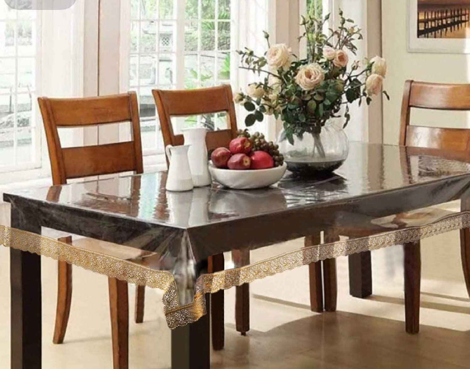 Kuber Industries 6 Seater Dining Table Cloth for Dining | Party | Events (Gold Lace)