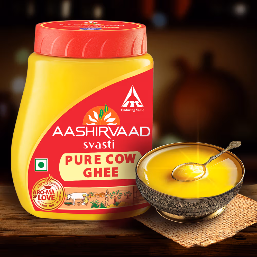 Premium ghee with rich aroma, slow-cooked for enhanced flavor, golden granular texture, naturally contains Vitamin A