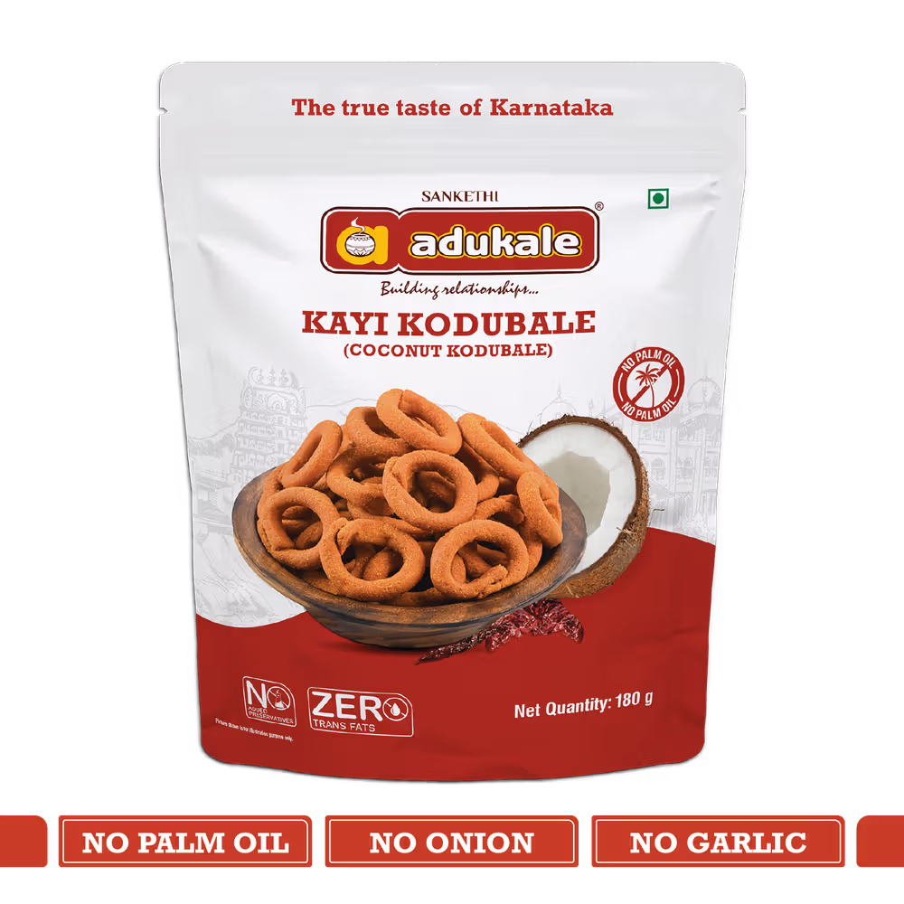 Rice Flour, Refined Rice Bran Oil, Refined Wheat Flour, Coconut Powder, Iodized Salt, Fried Gram Flour, Asafoetida, Red Chilli Powder, and Urad Dal Flour