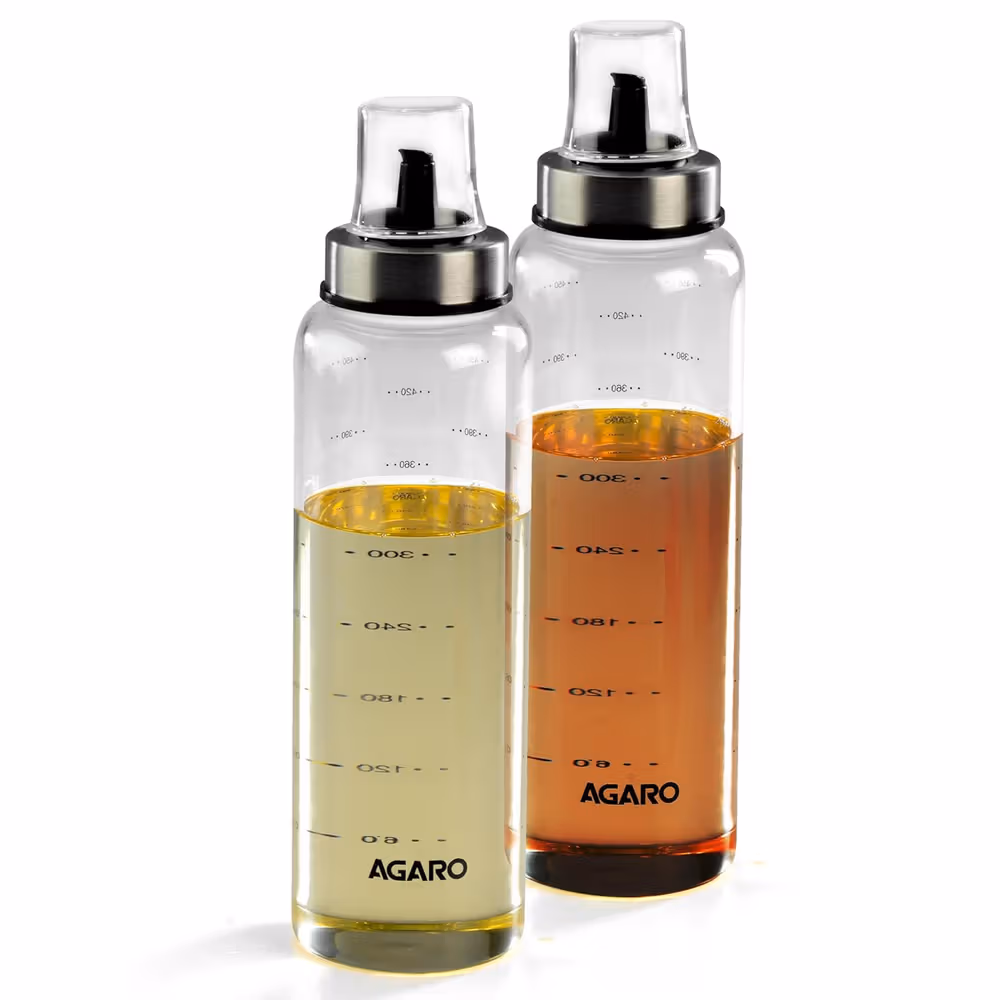 Borosilicate glass with markings, microwave and freezer safe, spout for easy pouring, metallic lid with BPA-free cover