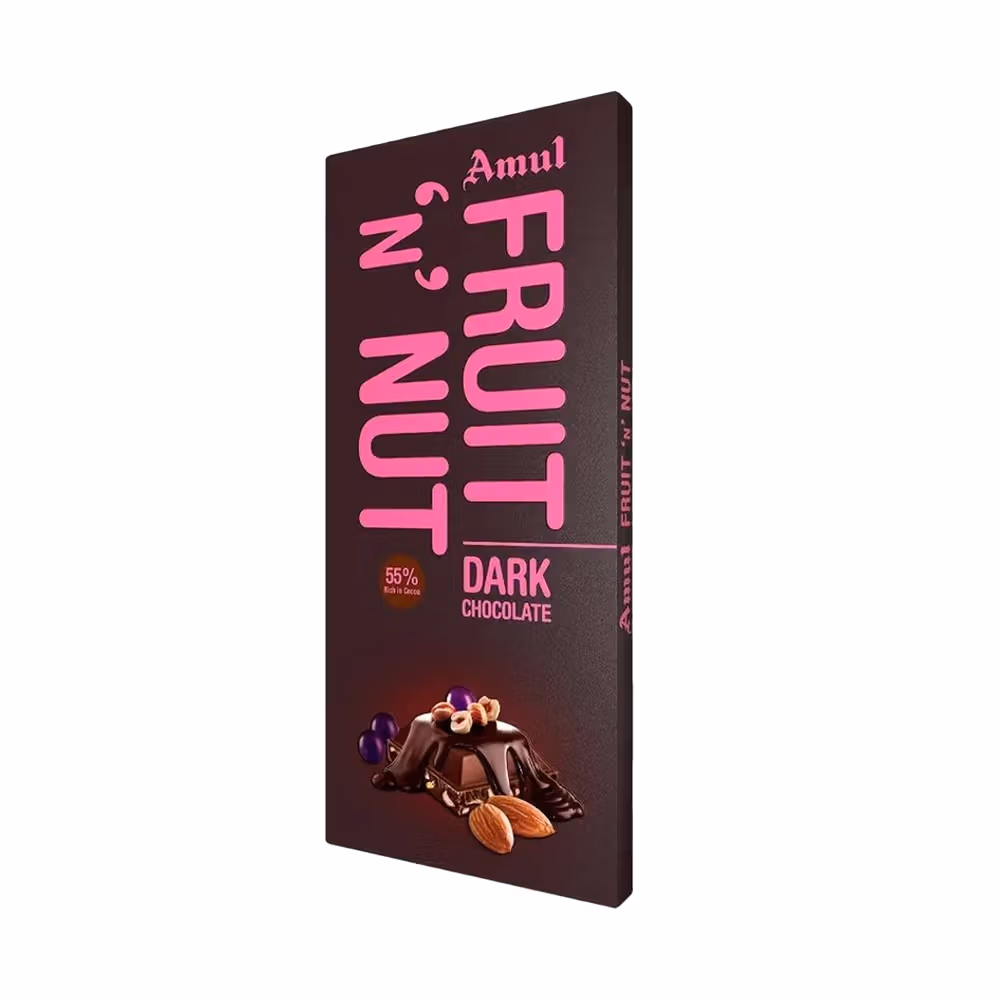 Rich dark chocolate blend, contains almonds and raisins, smooth texture, perfect for gifting