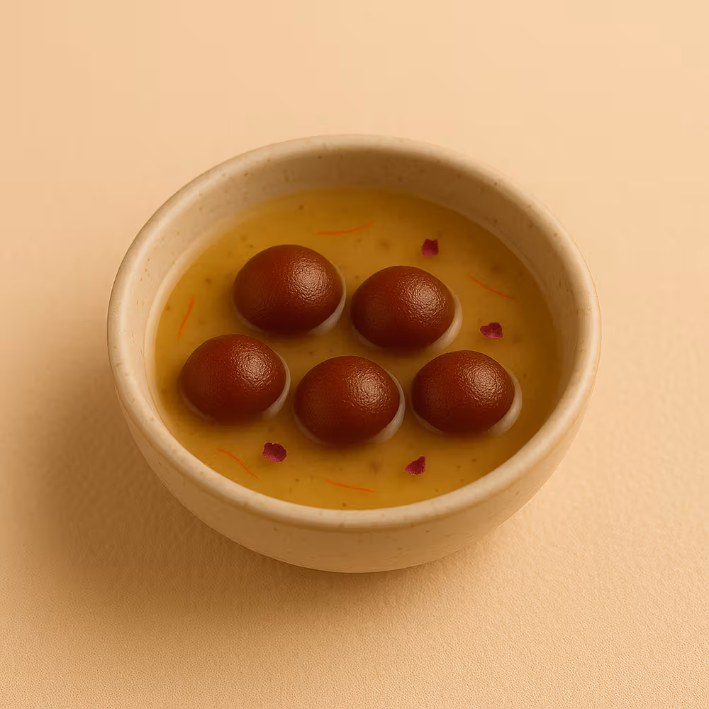 Mini jamuns soaked in rose-cardamom syrup - sweet, soft, and juicy.