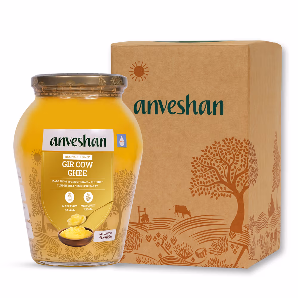 Made from A2 Gir cow milk using the traditional Bilona method, this ghee is rich in omega-3 and omega-6 fatty acids and is ideal for cooking and skincare