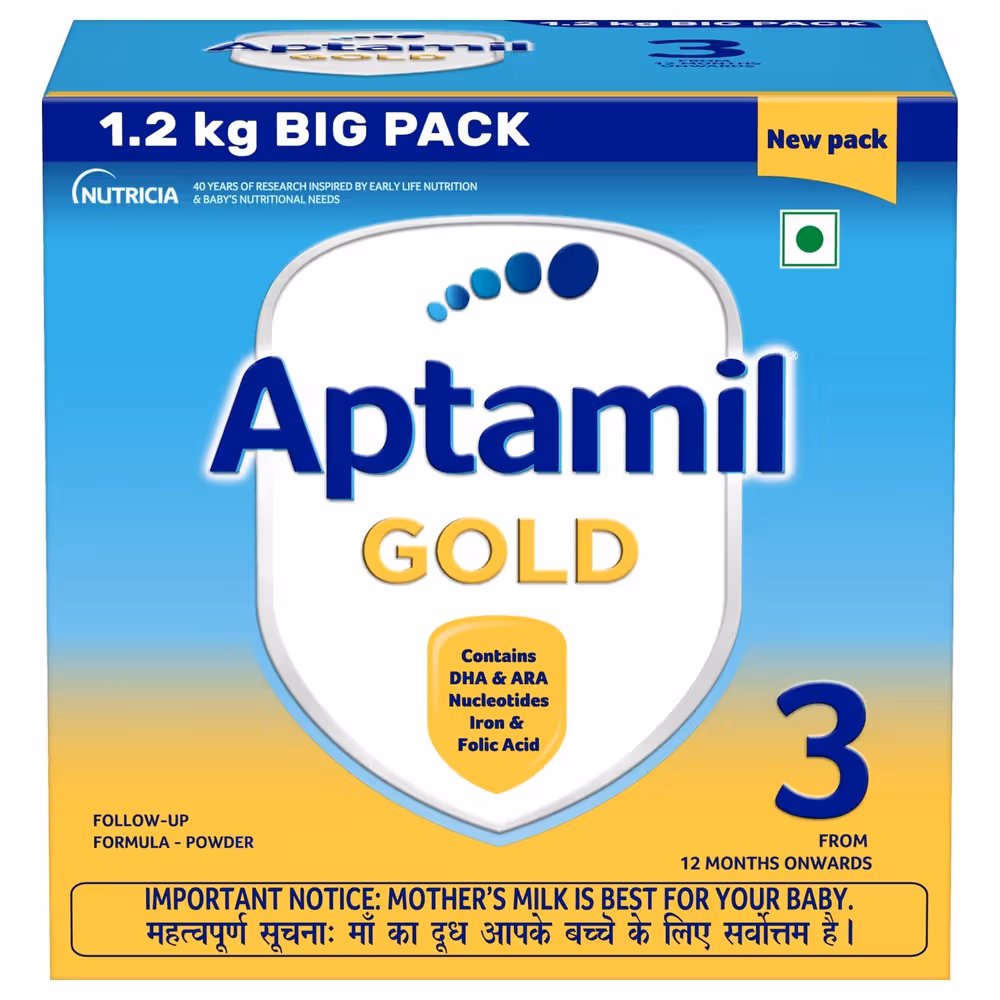 Aptamil Gold Stage 3 is enriched with DHA & ARA, nucleotides, iron and folic acid, along with vitamins A, B1, B2, B3, B5, B6, B12, C, D3, E, and K1 to support the body's optimal growth, cognitive development, digestive health, strong bone health, and a healthy immune system for toddlers aged 12-24 months