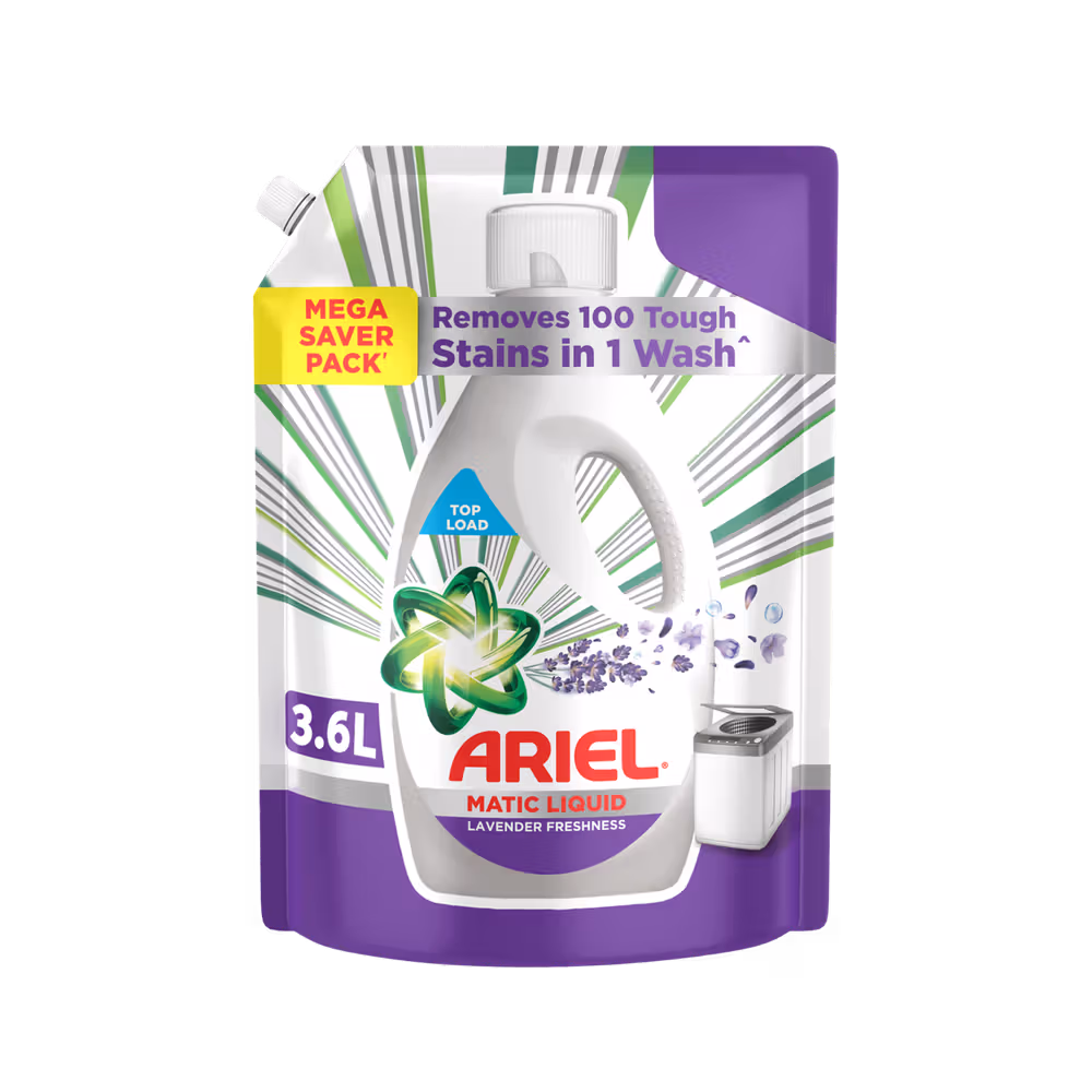 Ariel Matic Top Load Liquid Detergent removes tough stains in just 1 wash and protects your colored clothes from fading with a refreshing lavender fragrance