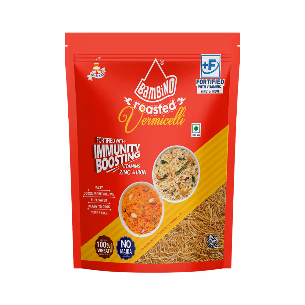 Hard Wheat Semolina/Rawa, Vitamins and Minerals Premix [Vitamin B3 (as Niacinamide), Iron (as Ferrous Sulphate), Zinc (as Zinc Sulphate), Vitamin B2 (Riboflavin), Vitamin B1 (as Thiamine Mononitrate), Vitamin B9 (Folic Acid) & Vitamin B12 (Cyanocobalamin)]