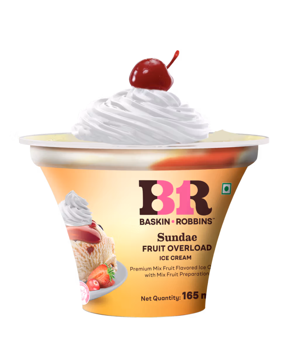 Water, milk solids, sugar, mix fruit preparation (28%) (strawberry, black currant, raisins, blueberry, cranberry, sugar, liquid glucose, stabilizer (401), acidity regulator (330), antioxidant (300), preservative (202), contains permitted synthetic food colors (110, 127) and natural color (150 (c)) and added artificial flavoring substances (strawberry)), fat emulsion (whip topping) (3%), roasted cashew (2%), stabilizers (410, 412), emulsifiers (471, 477), contains added artificial flavoring substances (mix fruit)