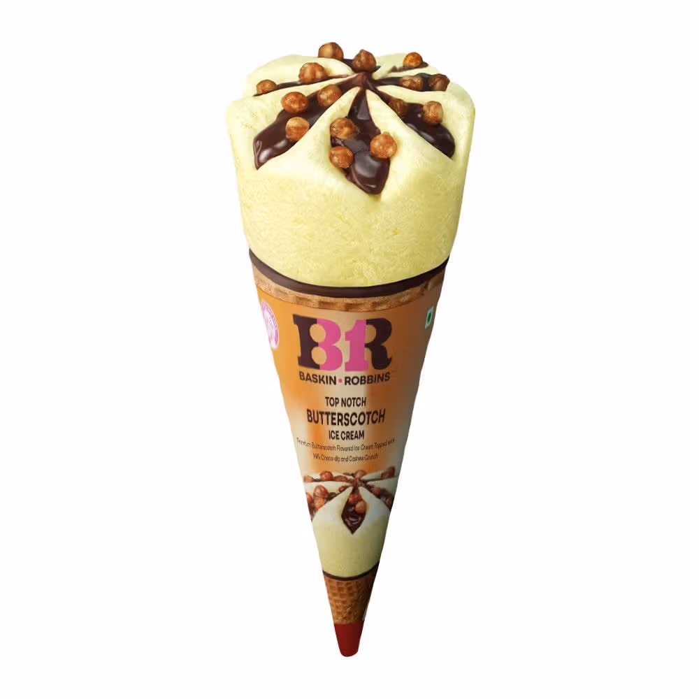Premium butterscotch flavor, topped with milk choco-dip, includes cashew crunch, perfect for dessert lovers