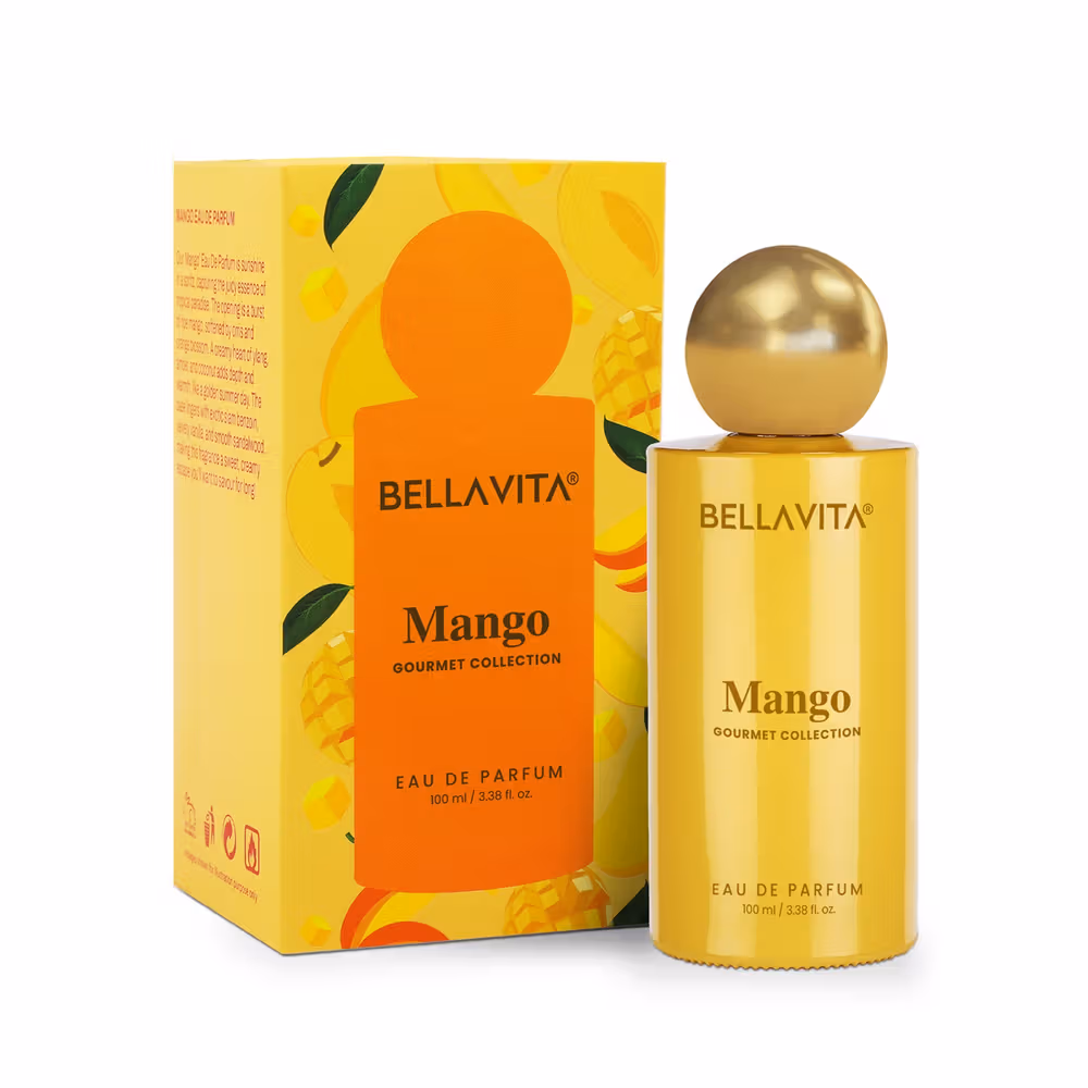 Long-lasting tropical mango fragrance, Premium imported fragrance oils, Unisex scent for all occasions, Elegant gold-capped bottle design