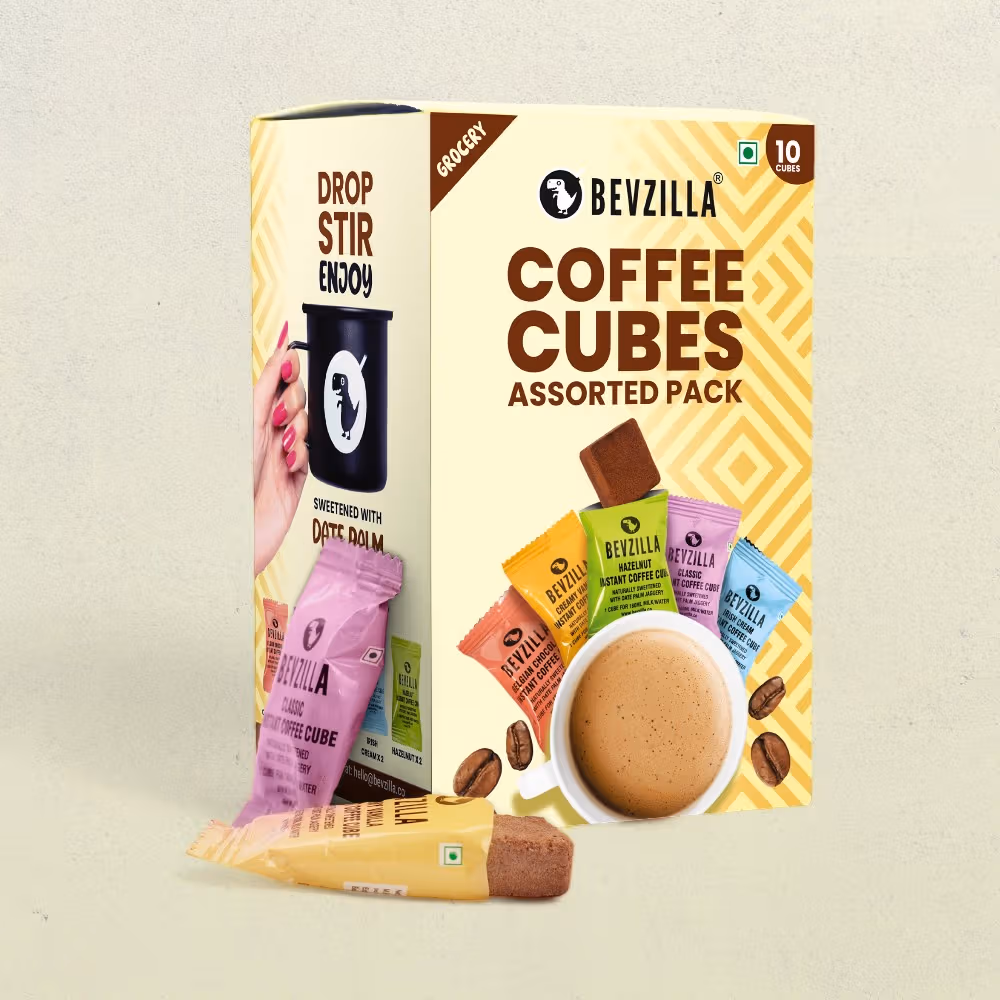 Sweetened with Date Palm Jaggery. Ready in just 30 seconds. Available in 5 assorted flavours. Contains natural caffeine boost