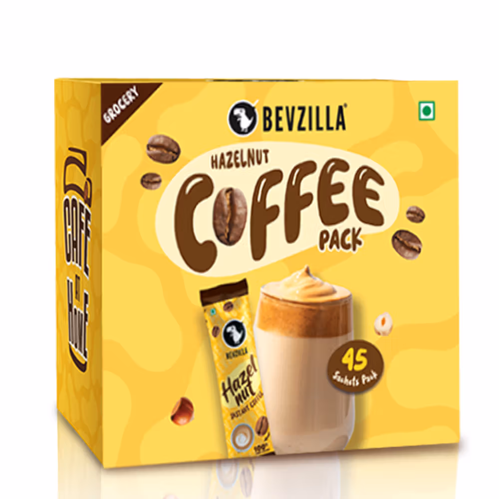 Flavour- Hazelnut-infused coffee. Packaging- 45 single-serve sachets (90g total). Versatile- ideal for Espresso, Latte, & Cappuccino. Easy to use- convenient single-serve sachets