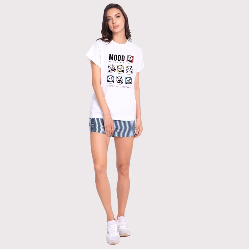 Playful panda graphic design, soft cotton fabric for comfort, regular fit for everyday wear, round neck for classic style