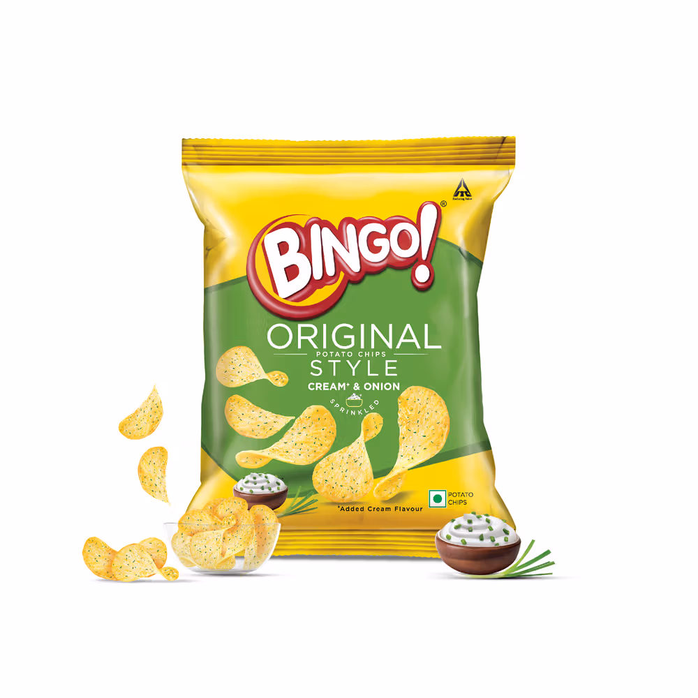 Potato (58.8%), Refined Palmolein, Seasoning (Sugar, Iodized Salt, Spices and Condiments, Nature Identical Flavouring Substances, Acidity Regulators (INS 330, 260, 334, 296), Garlic, Dehydrated Onion, Natural Flavours and Natural Flavouring Substances, Flavour Enhancer (INS 635), Refined Sunflower Oil), Iodized Salt
