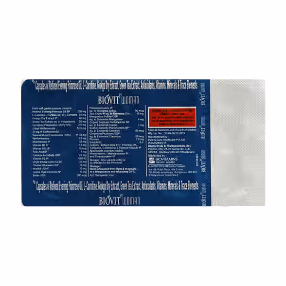 Benfotiamine (1.5mg), Choline Bitartrate (10mg), Citric Acid (12.5mg), Elemental Chromium (50mcg), Elemental Copper (1mg), Elemental Iodine (50mcg), Elemental Manganese (4mg), Elemental Selenium (40mcg), Gingko Biloba (10mg), Green Tea (20mg), L Carnitine/Levocarnitine (10mg), L Lysine (10mg), Lycopene (2500mcg), Mixed Carotene (11.33mg), Myo Inositol (10mg), Piperine (2.5mg), Refined Sunflower Oil (250mg), Vitamin B7 (Biotin) (300mcg), Vitamin B12/Methylcobalamin (5mcg), Vitamin B3 (45mg), Vitamin B6/Pyridoxine (1.5mg), Vitamin D3/Cholecalciferol (1000IU), Wheat Germ Oil (25mg), Zinc (10mg)