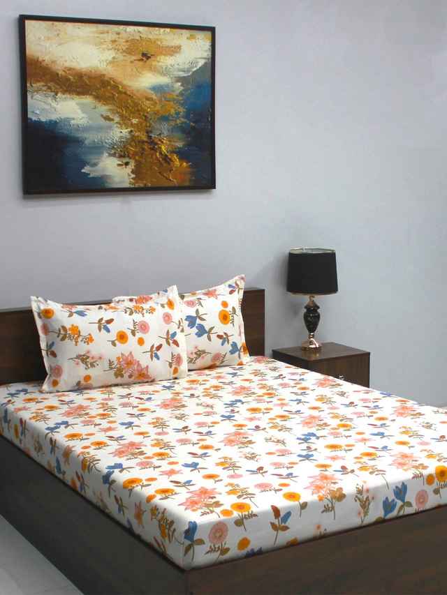 Bombay Dyeing Vista 144 Tc Queen Size Bedsheet With 2 Pillow Covers - Yellow