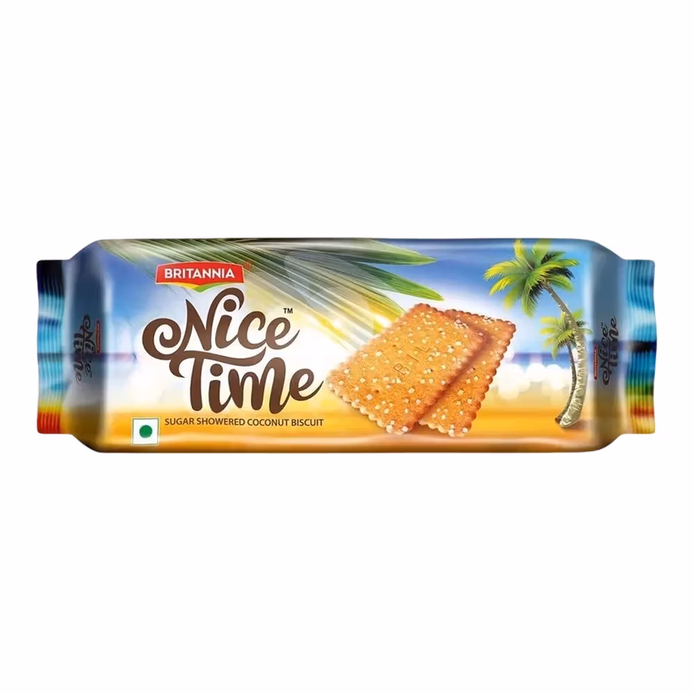 Artificial Flavouring Substances (Coconut, Vanilla), Coconut Products (4.5%), Edible Maize Starch, Emulsifiers (322(i), 471, 472e), Iodised Salt, Invert Sugar Syrup, Milk Solids, Raising Agents (503(ii), 500(ii), 450(i)), Refined Palm Oil, Refined Wheat Flour (Maida), and Sugar