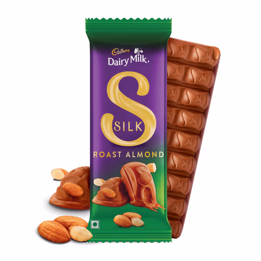 Premium silk smooth milk chocolate texture, Made with glass and a half of fresh milk, Rich roasted almond pieces in every bite