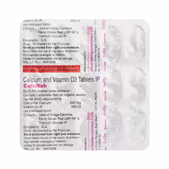 A daily supplement that helps maintain strong bones and teeth by improving calcium levels and supporting better absorption through added Vitamin D3. It is commonly used in individuals with low calcium states, muscle cramps and bone-related disorders like osteoporosis. Take it after meals with a glass of water or milk. Mild side effects such as nausea, diarrhea, or stomach discomfort may occur but usually get better on their own.
