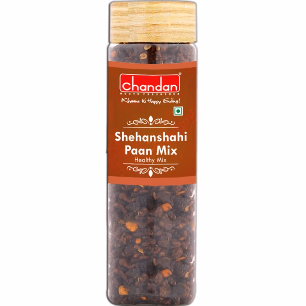 Royal paan-flavored mouth freshener, contains natural ingredients, convenient jar packaging, perfect after-meal refreshment