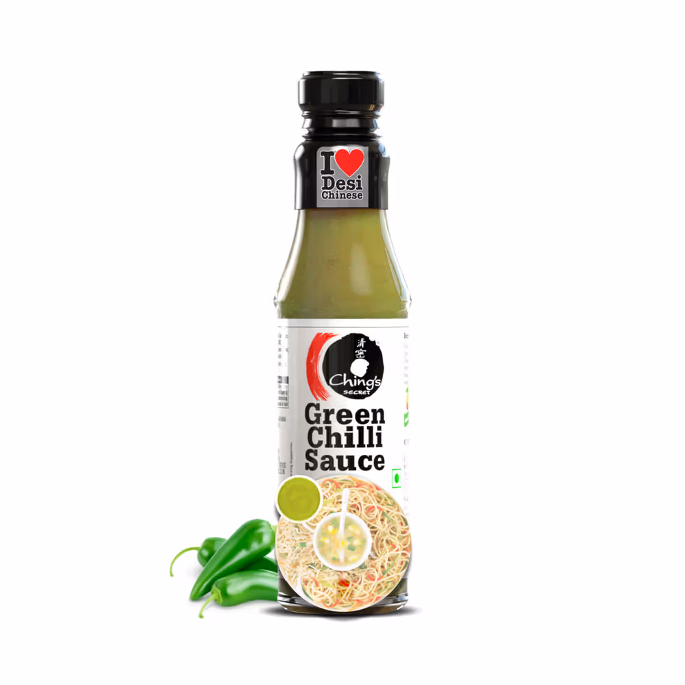 Water, Green Chilli Paste (27%), Iodised Salt, Sugar, Thickener (INS 1422), Garlic Powder, Acidity Regulator (INS 296, INS 260), Emulsifying and Stabilizing Agent (INS 415), Spices (Cumin, Coriander), Preservative (INS 211), Natural Flavouring Substances