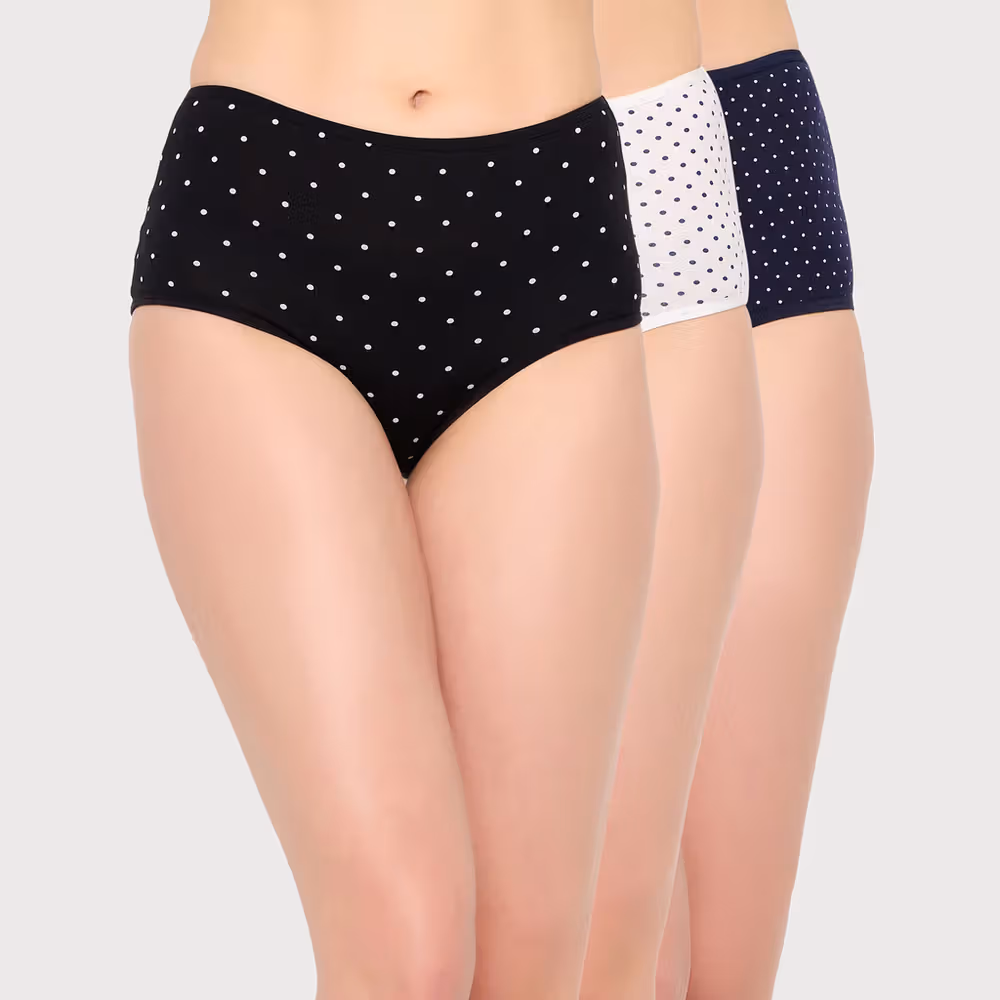 High waist for added comfort, breathable cotton spandex fabric, medium coverage for everyday wear, stylish striped design