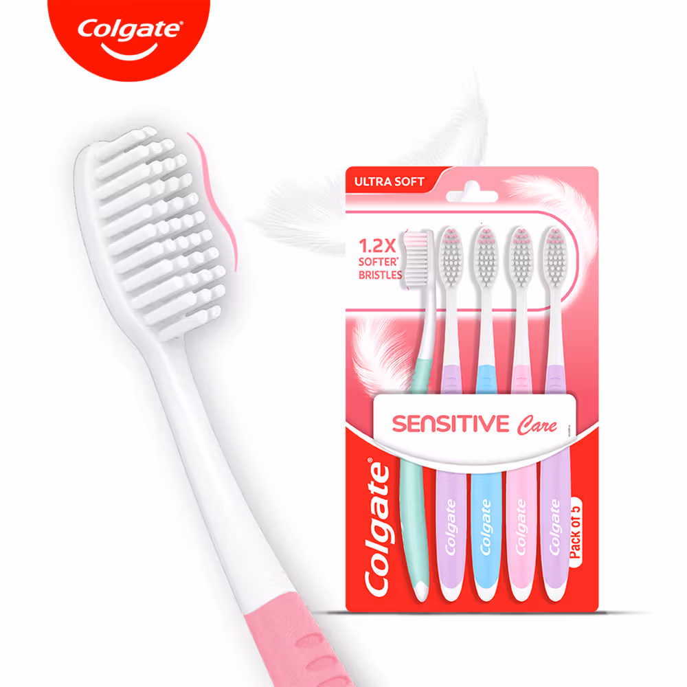 Ultra-soft bristles for gentle care, designed for sensitive teeth and gums, flexible neck reduces pressure, comfortable grip for better control
