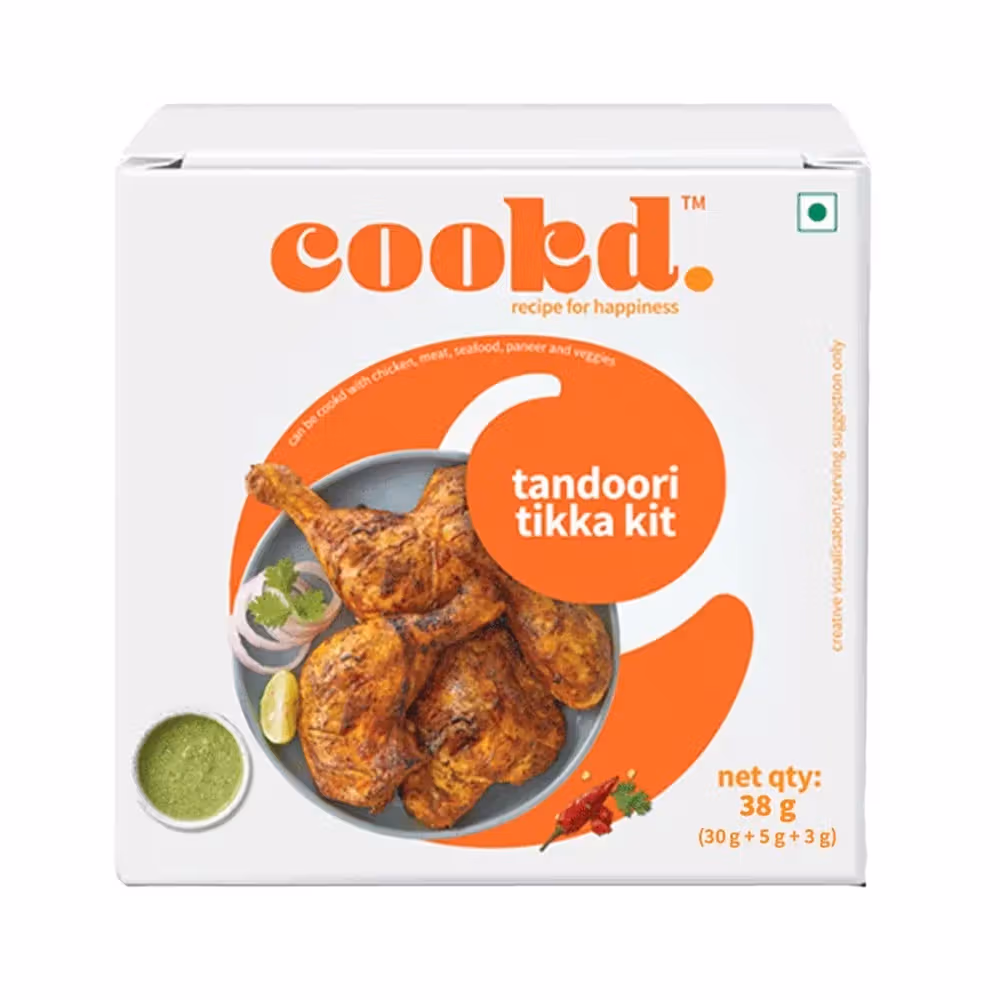 Marinade: spices and condiments (chilli, coriander, cumin, ginger, turmeric, black pepper), iodized salt, garlic powder, tomato solids, corn starch, dehydrated herbs, flavour enhancers (INS627, INS631), acidity regulator (INS330), thickener (INS 451), natural flavour. Sprinkler: black salt, mango powder, spices and condiments (cumin, coriander, black pepper, ginger), dehydrated herbs, natural flavour. Oil: spice extract (mustard), natural flavour, mustard oil