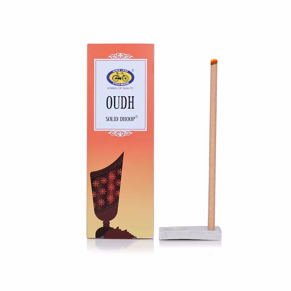 Premium bamboo-free eco-friendly design, rich and long-lasting oudh fragrance, includes convenient dhoop stick holder