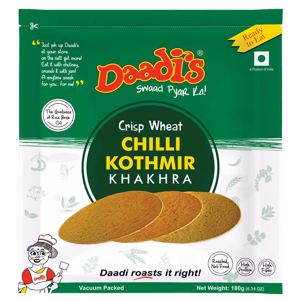 Premium whole wheat crispy snack, Made with fresh coriander and spices, Perfect blend of health and taste