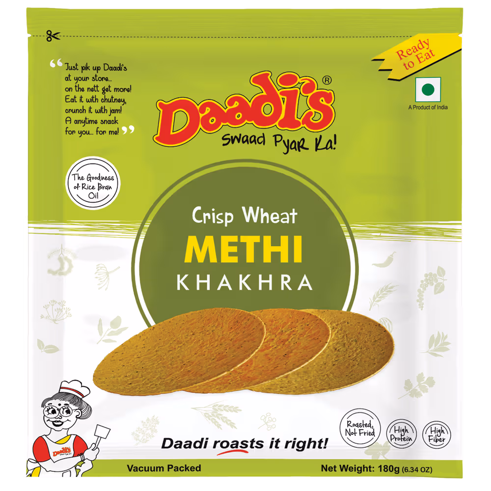 Crispy and healthy snack, made with whole wheat flour, contains fenugreek leaves, vacuum packed for freshness
