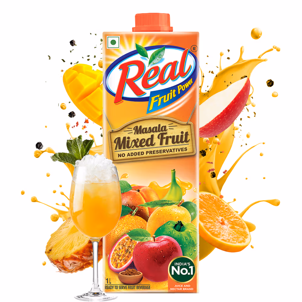 Premium mixed fruit juice with masala twist, no artificial preservatives added, perfect blend of fruits and spices