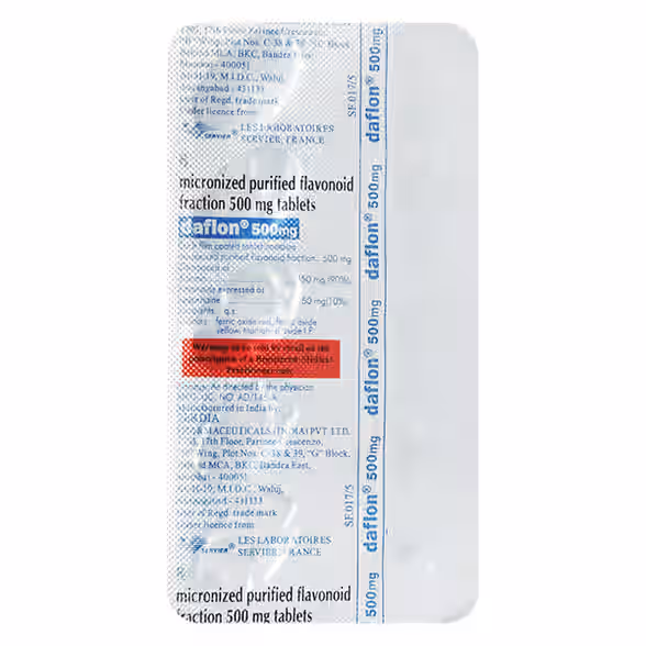 A tablet combination used to improve blood flow in veins and reduce swelling, pain, and heaviness associated with chronic venous insufficiency and hemorrhoids (piles). It strengthens vein walls and reduces inflammation. Take with food to improve absorption and minimize stomach upset. Side effects may include stomach upset, diarrhea, headache, dizziness, and skin rash.