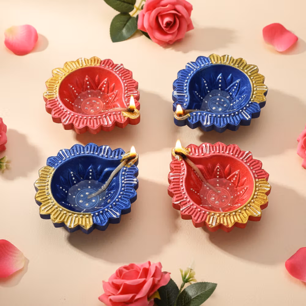Handcrafted clay design, perfect for festive decor, traditional and elegant style, includes 4 pieces per pack