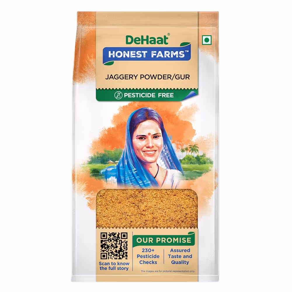 DeHaat Honest Farms Pesticide Free Jaggery Powder is a natural sweetener, chemical-free, and rich in minerals, making it a healthy sugar alternative