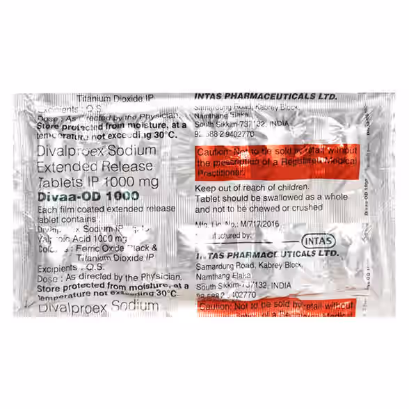 An extended-release antiepileptic and mood stabilizer tablet used to treat seizure disorders, bipolar disorder, and to prevent migraine headaches. It works by increasing levels of a calming neurotransmitter in the brain. Take with food to minimize stomach upset. Common side effects include nausea, drowsiness, dizziness, weight gain, and tremor.