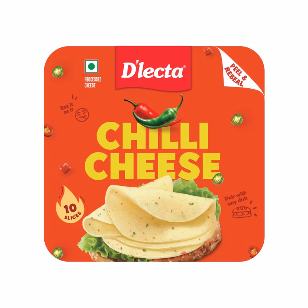 Perfect blend of cheese and spicy chilli, easy-peel individual slices with separators, ideal for burgers and sandwiches, fresh and long-lasting refrigerated storage