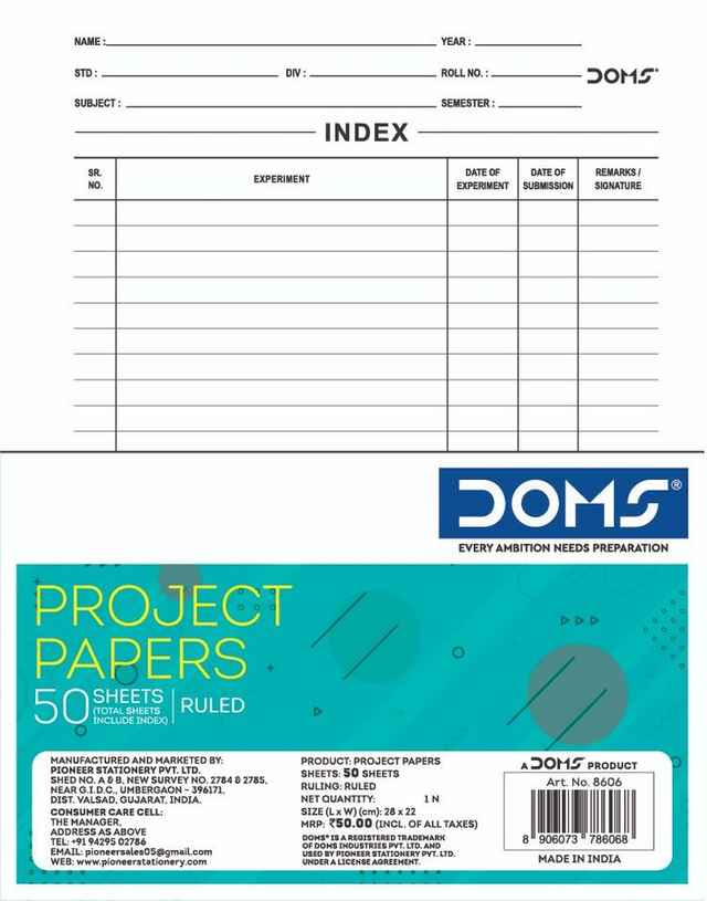 Doms Ruled Sheets - High-Quality Paper | White