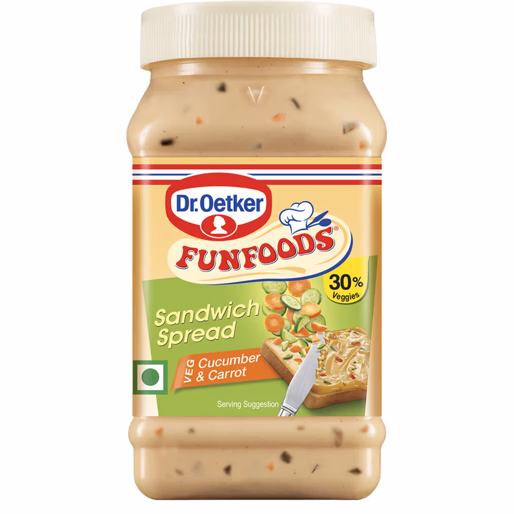 Quick fix for hunger pangs! Enjoy delicious sandwiches, wraps, or buns with our vegetable sandwich spread. Made with 30% vegetables, tangy tomatoes, and crunchy carrot & cucumber bits. Perfect for sandwiches, subs, wraps, burgers, dips, and quick snacks