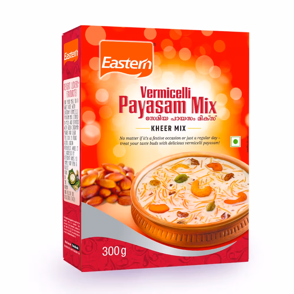 Boil 1.5 L of milk. Add entire packet of eastern vermicelli payasam mix into the boiling milk. Cook on medium flame for 15 - 20 mins, stirring occasionally. Add one tablespoon of butter/ghee. Delicious vermicelli payasam is ready to serve