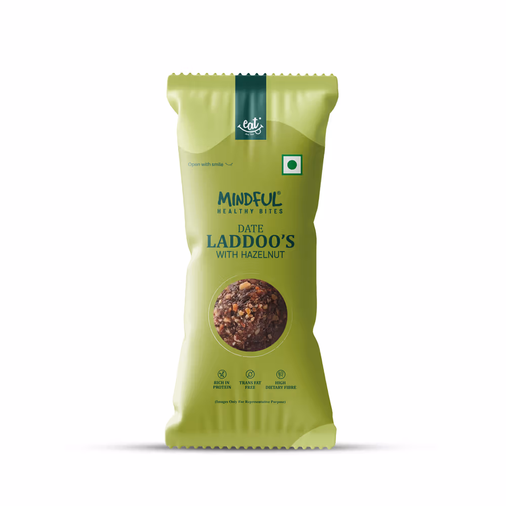 Eat Anytime Hazelnut Date Laddoo combines rich hazelnuts with sweet dates for a guilt-free snack, packed with fiber and protein for sustained energy