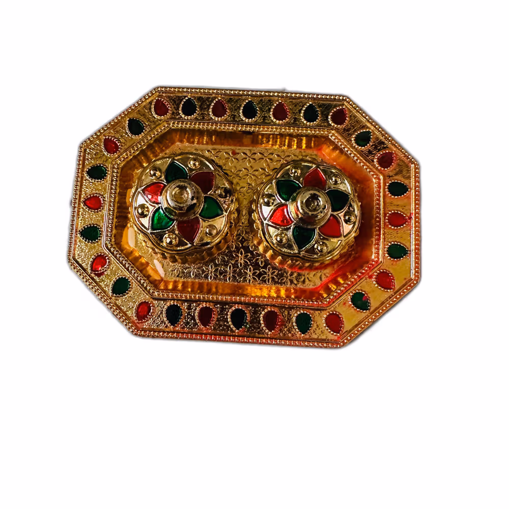 This decorative Roli Chawal holder is ideal for pooja, festivals, and gifting, adding elegance to your home and celebrations with its golden finish