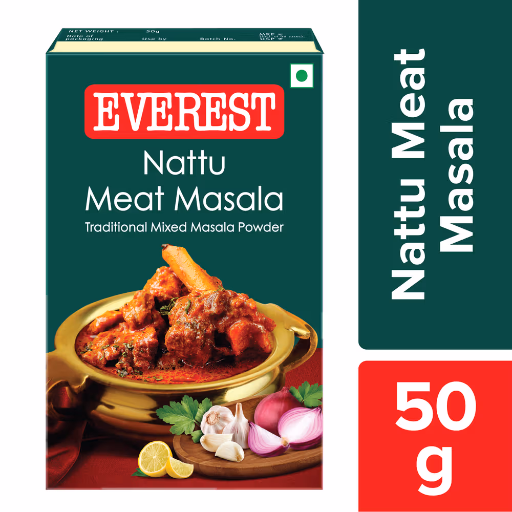 Marinate, clean and cut pieces of 500 g meat for 2 hrs in a mixture of 2 onions ground to a fine paste, 1 tsp Everest Ginger-garlic paste, 4 tbsp strained curd and salt. Heat 4 tbsp oil and fry 2 sliced onions till crisp. Add marinated meat, 3 tsp Everest Nattu Meat Masala, Everest Tikhalal Chilli Powder and salt to taste. Stir for 5 min. Add 2 cups water. Pressure cook for 10 min. Remove from fire. Serve warm with rice or bread (roti/naan)