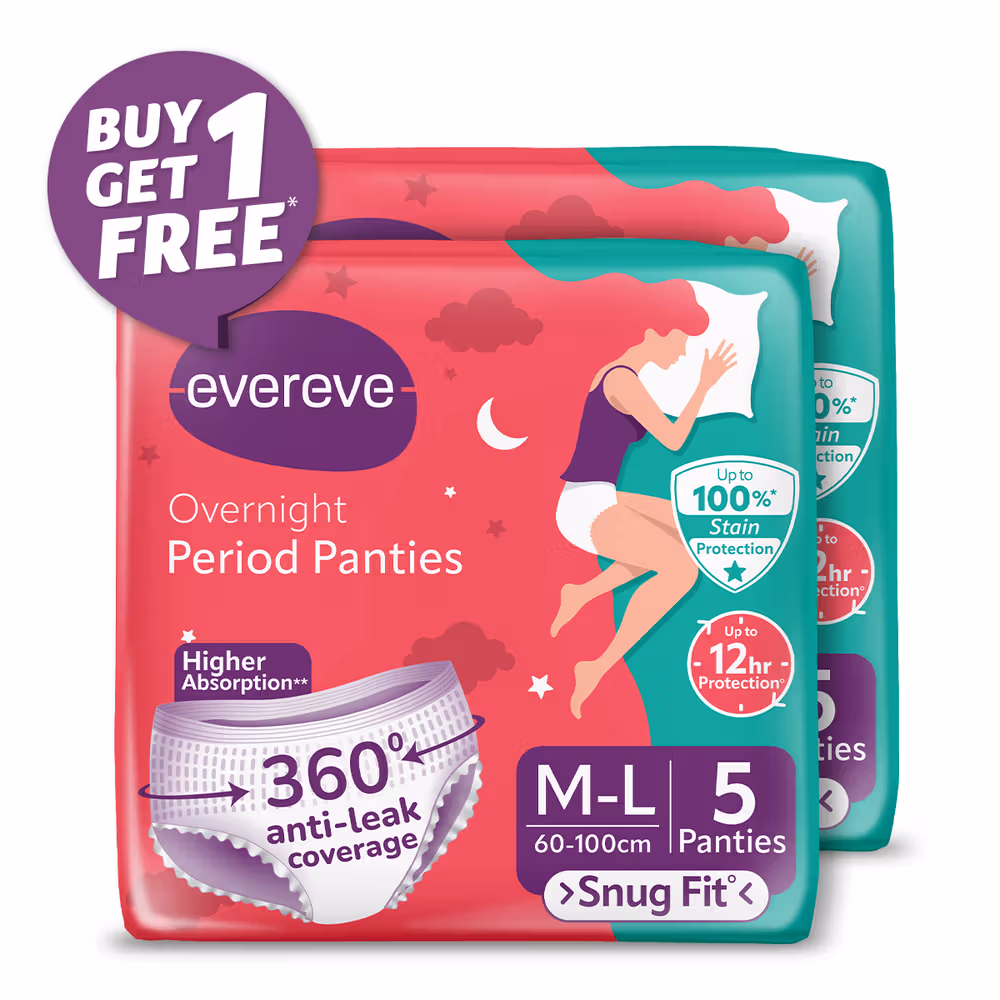 360° anti-leak coverage for complete protection, breathable fabric prevents rashes, equivalent to 3 regular pads, snug fit stays put all night