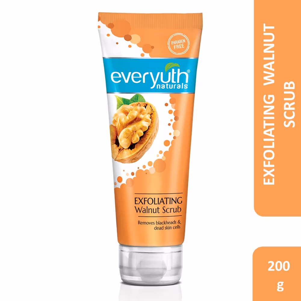 Natural walnut shell particles, exfoliates dead skin cells, helps prevent blackheads, paraben-free formula