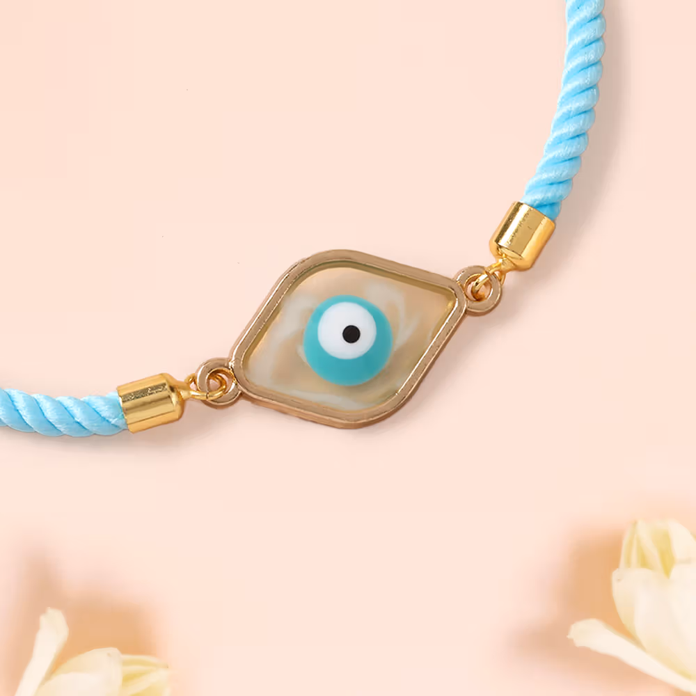 Protective evil eye charm, adjustable for perfect fit, durable thread construction, elegant turquoise and gold design